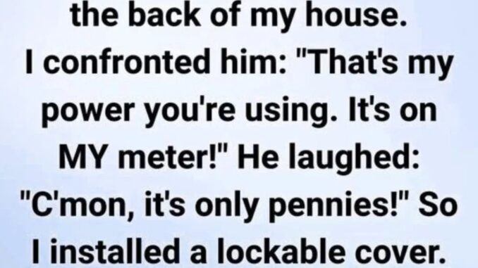 Later that day, I decided to approach the situation calmly. I mentioned to my neighbor, “Hey, I think you plugged into my outlet by mistake—just so you know, that runs through my meter.” He laughed it off, saying it was “just a little power,” as if that made it okay. I didn’t want to create tension, so I simply added a small lockable cover to the outlet—a simple, respectful boundary to prevent future mix-ups.